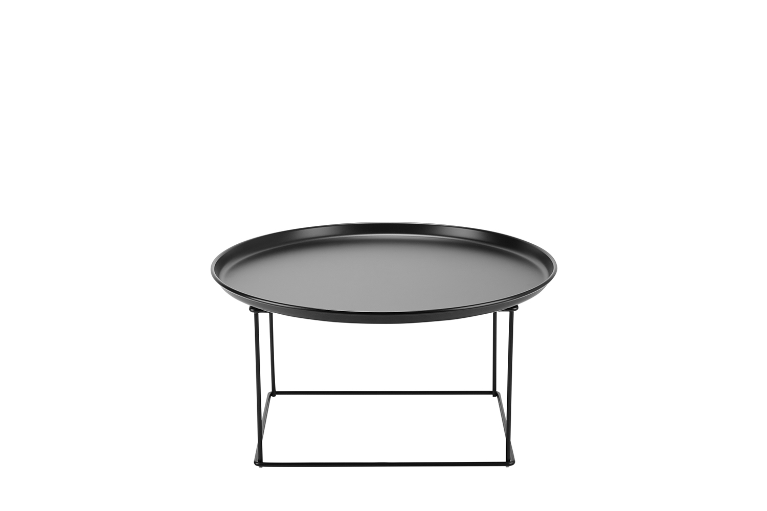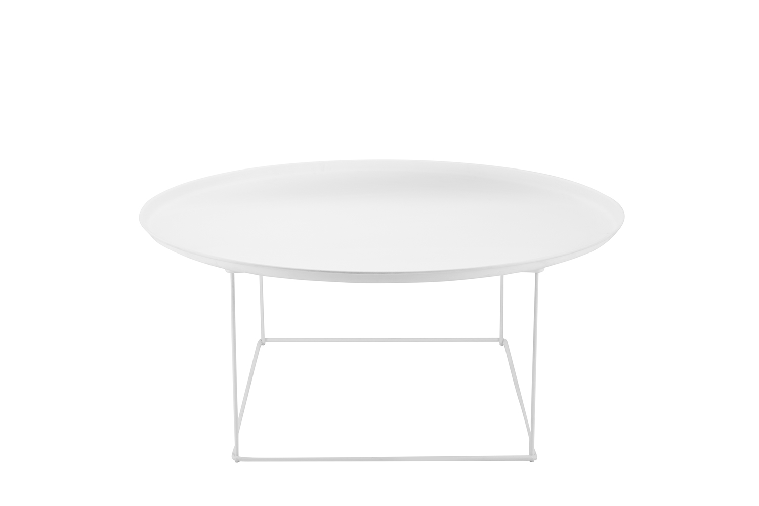 The theme of the tray, in white, black or with a copper finish, is picked up to create three tables, whose lightness results from the steel frame.