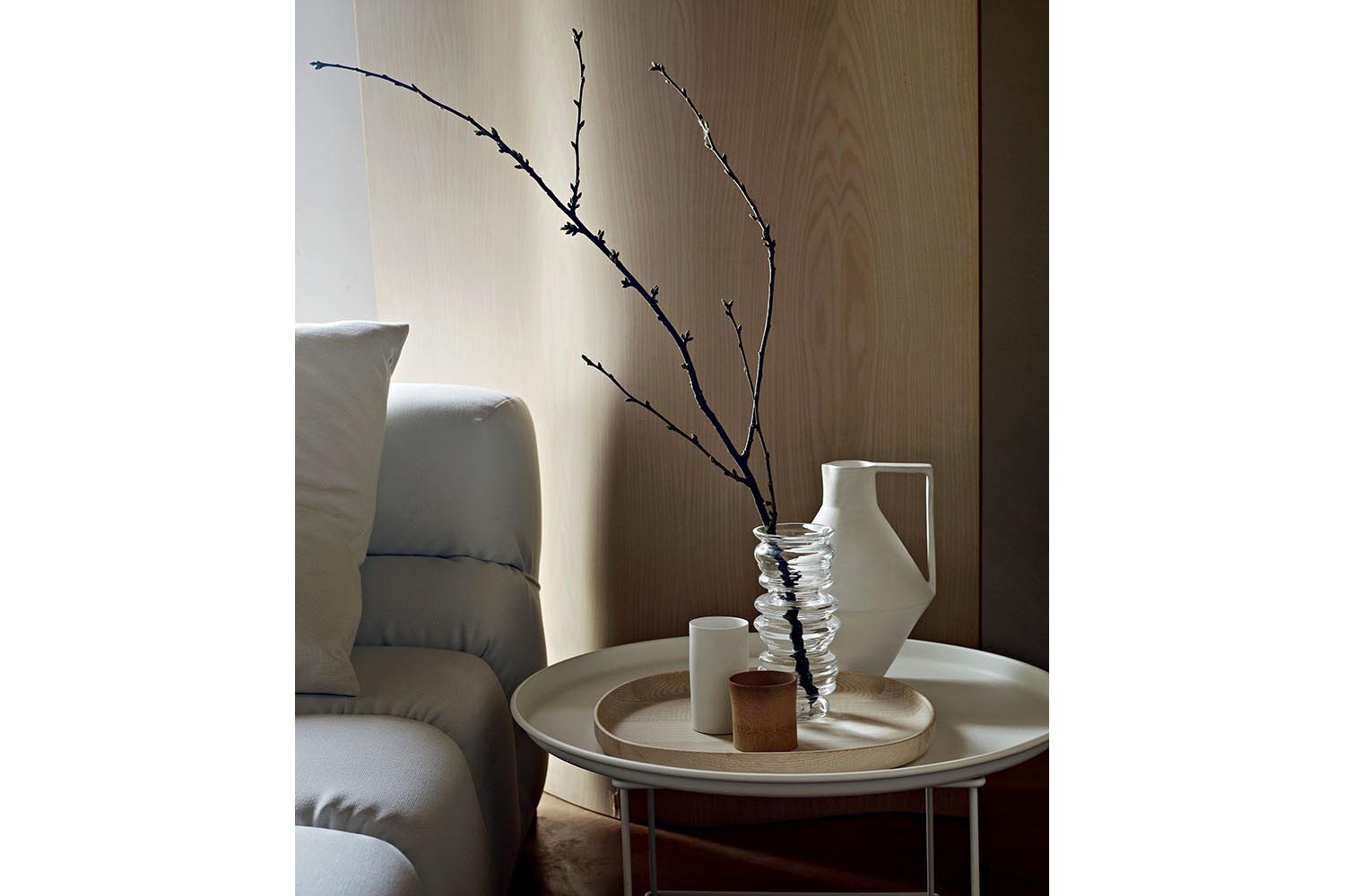 B&B Italia Fat Fat Coffee Table / Clear oriental inspiration for the collection of tables with varnished tray matching the shade of the structure designed for casual multipurpose environments.